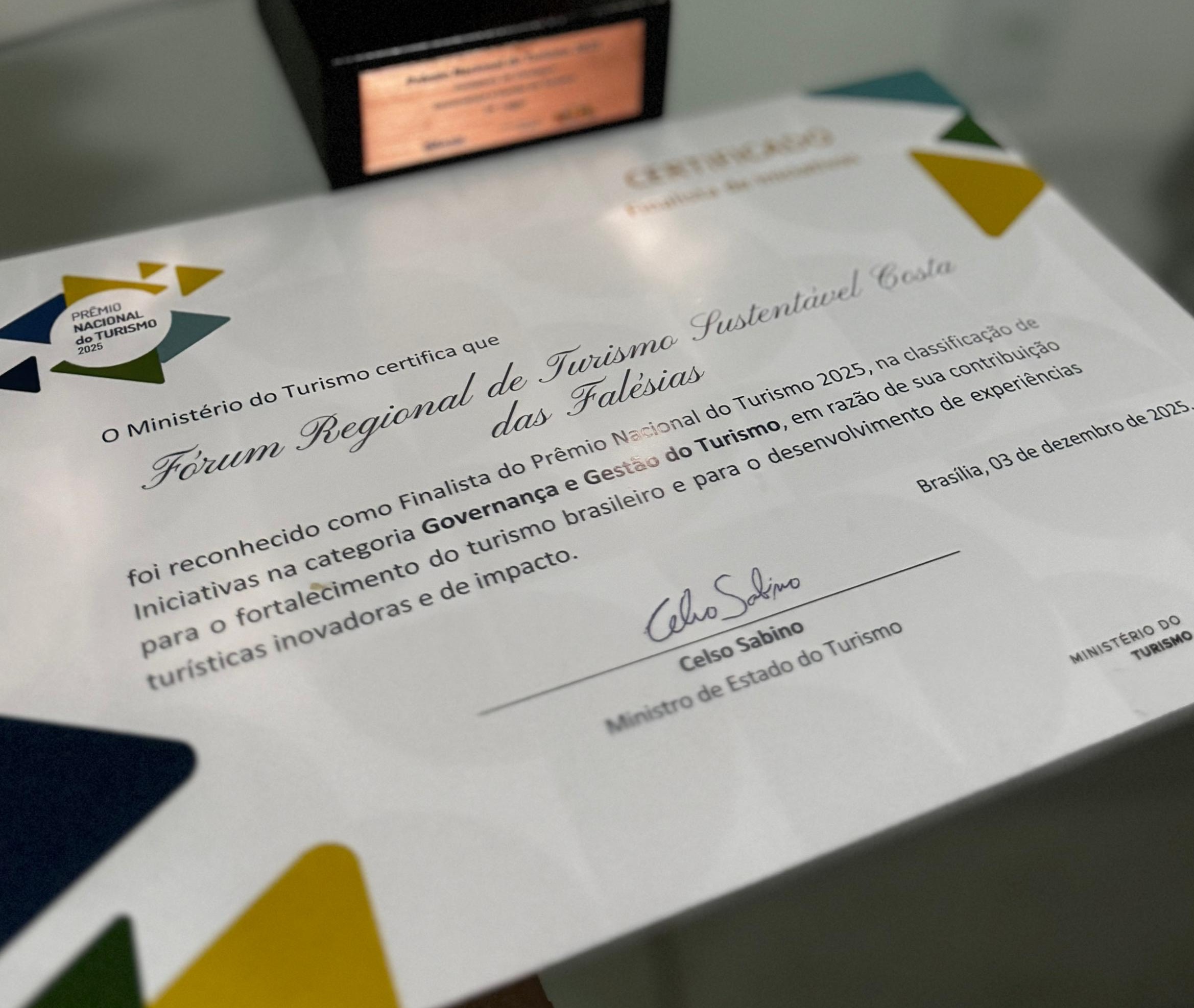 Promovido pelo Ministério do Turismo em parceria com o Conselho Nacional do Turismo, o prêmio reconhece iniciativas que influenciam positivamente o turismo brasileiro e reforçam o papel do setor como gerador de emprego, renda e oportunidades. Na disputa, o Fórum Costa das Falésias concorreu com a Grande Reserva Mata Atlântica e com o programa Caminhos do Campo, o que valoriza ainda mais o destaque alcançado pela governança paraibana.