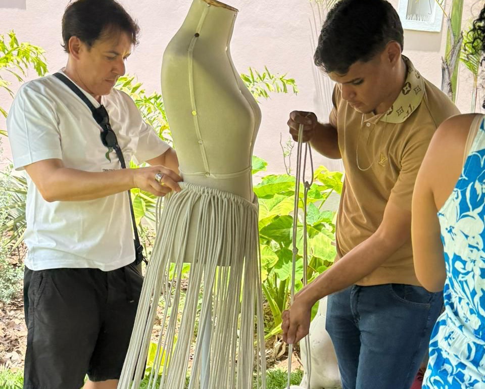 Desenvolvida pelos alunos do curso técnico de Produção de Moda da ECIT de Alcantil, a coleção tem coordenação do professor Haendel Melo e orientação da artesã Sandovânia Bertulino, com o macramê como elemento central. A proposta destaca o artesanato como expressão da cultura popular e do sentimento de pertencimento, transformando saberes tradicionais em design contemporâneo.