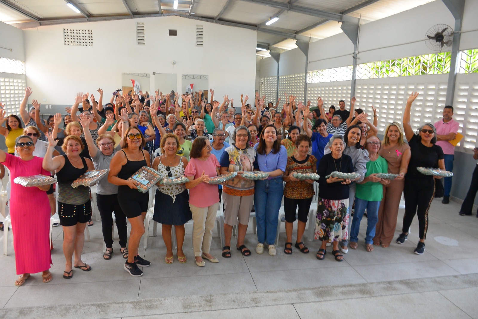 Na oportunidade da reinauguração dos Centros, foram entregues bandejas de ovos caipiras do Programa Nutrir + PB para a população em vulnerabilidade social que participou do Evento.