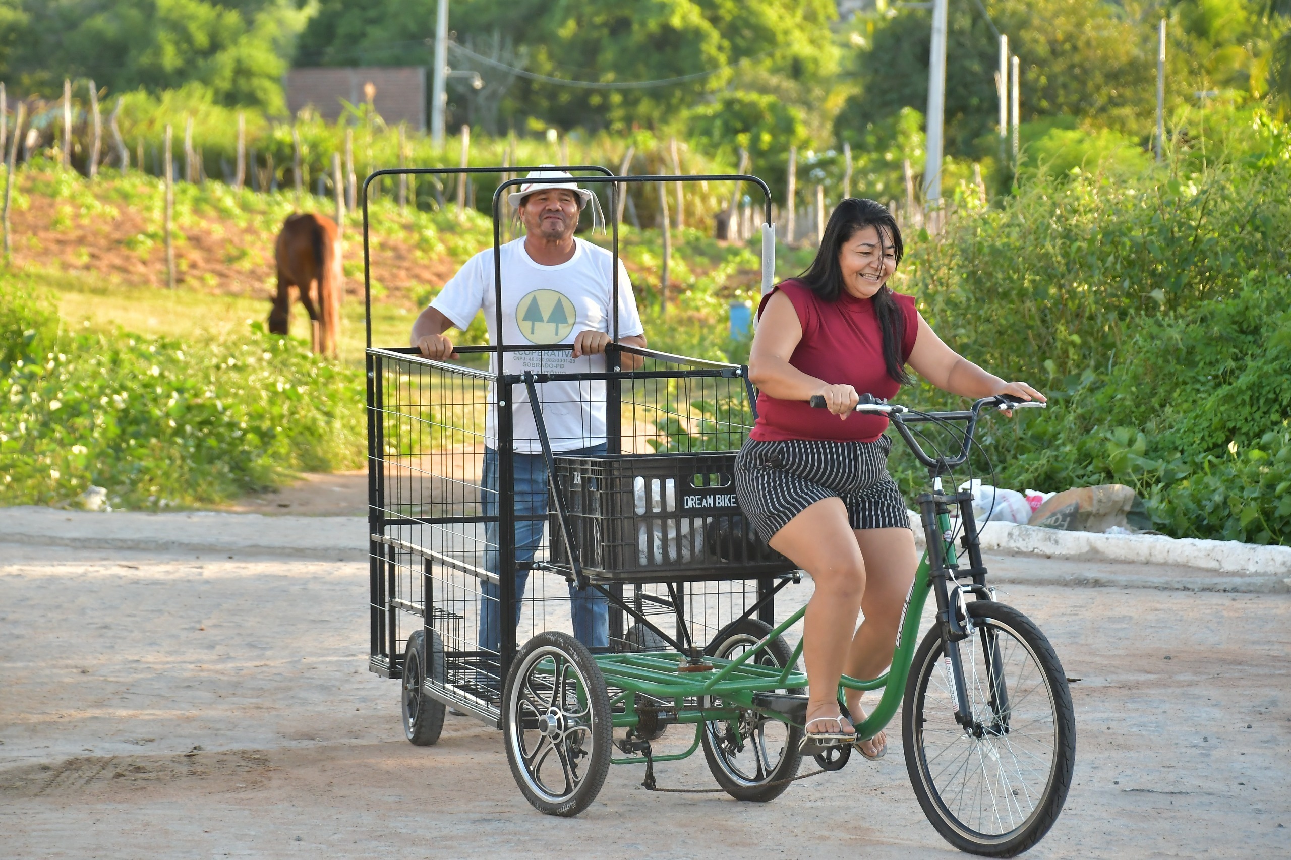 Por sua vez, os trabalhadores da Associação Bom Jesus de Sapé, juntamente com a vice-prefeita do município, Lenilda Leôncio, receberam três triciclos, durante evento que ocorreu na Central de Beneficiamento e Comercialização da Agricultura Familiar e Economia Solidária (CBCAFES). “É um momento muito importante para o município. Esses triciclos vão ajudar diretamente os catadores, que trabalham com muito esforço na coleta de recicláveis. Com esse apoio, eles terão mais dignidade e melhores condições de trabalho”, disse a vice-prefeita de Sapé.