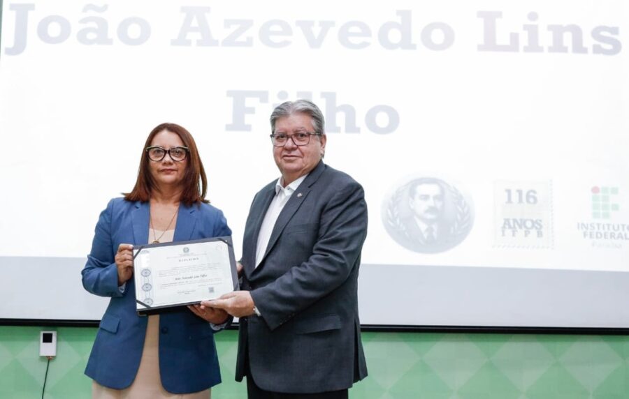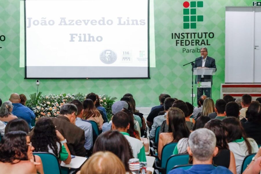 O governador João Azevêdo prestigiou, na tarde desta sexta-feira (26), a solenidade alusiva aos 116 anos do Instituto Federal da Paraíba (IFPB), ocorrida no prédio da Reitoria da Instituição, em João Pessoa. O evento foi marcado por apresentações culturais de grupos de dança de Guarabira e Santa Rita, desfile de moda dos estudantes de Pedras de Fogo, entrega da comenda Coriolano Medeiros à professora Verônica Arnaud e homenagem póstuma ao ex-servidor Mercyo Costa, posse do auditor do IFPB, Bruno Rodrigues, no Núcleo de Integridade e Governança, além do lançamento do portal do Egresso, espaço de conexão com os estudantes que fizeram parte de IFPB.