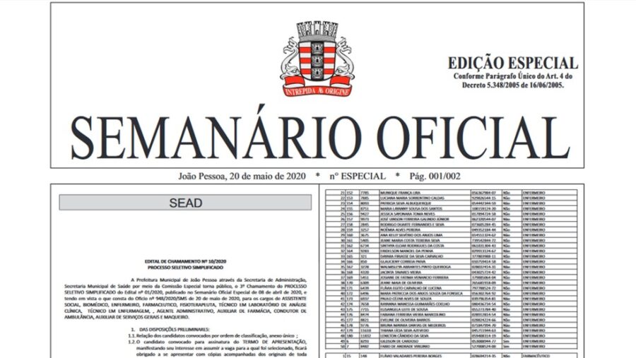 O prefeito de João Pessoa, Cícero Lucena, nomeou mais 106 aprovados nos concursos realizados em junho deste ano, sendo 47 assistentes administrativos, três engenheiros e 56 profissionais de diversas especialidades da área da saúde. Além disso, foram nomeados também cinco agentes de Controle Urbano, aprovados por ordem de classificação no concurso da Secretaria de Desenvolvimento […]